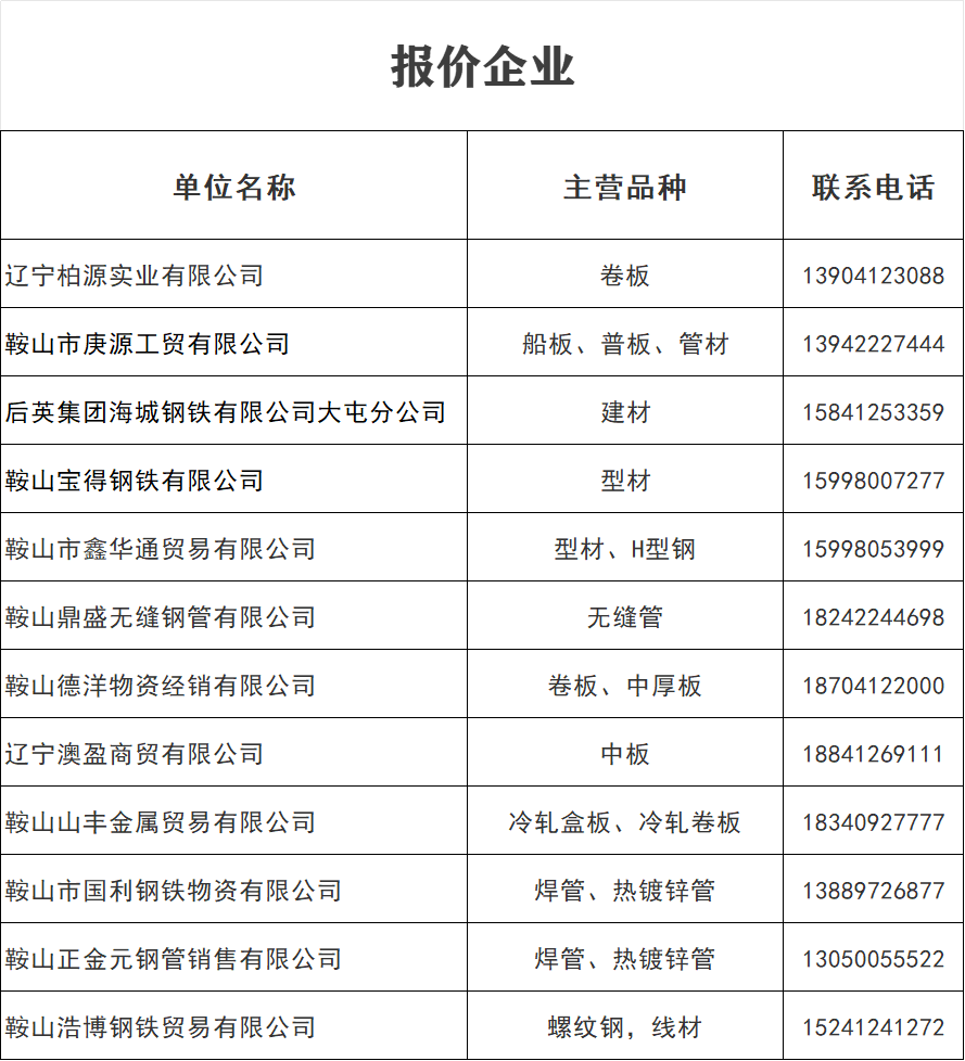 3月5日 鞍山地區(qū)鋼材價格表