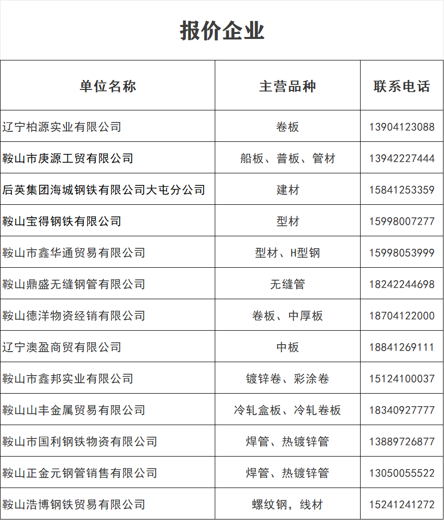 4月13日 鞍山地區(qū)鋼材價(jià)格表